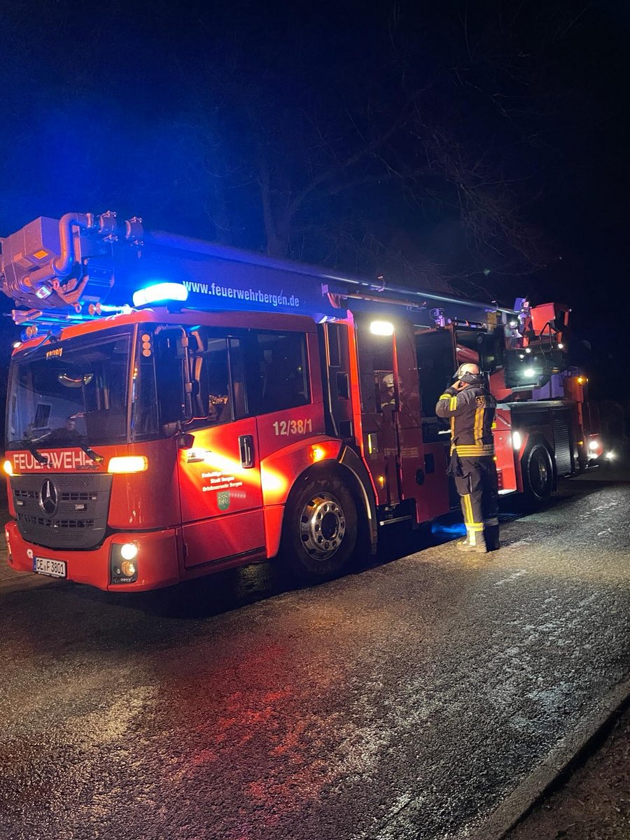 Die erste Erkundung ergab, dass es im Haus einen brennenden Kamin gab und die Rußablagerungen im Schornstein in Brand geraten waren. Die Einsatzkräfte räumten das Brandgut aus dem Kamin um eine weitere Ausbreitung zu verhindern. Die Kontrolle mit der Wärmebildkamera ergab, dass das Mauerwerk erwärmt war. Um den Schornstein vom Brandgut zu befreien, wurde ein Schornsteinfeger an die Einsatzstelle berufen. Dieser hatte jedoch Probleme den Schornstein zu erreichen und zu kehren. Deswegen wurde im weiteren Verlauf die Hubrettungsbühne aus Bergen nach Winsen alarmiert. Nachdem der Schornstein gekehrt war und das Mauerwerk abkühlte, konnte die Einsatzstelle an den Eigentümer übergeben werden und die Feuerwehr einrücken.