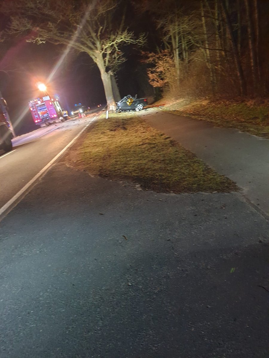 Am frühen Morgen des 03.03.2026 wurde die Feuerwehr zu einem Verkehrsunfall auf einer Landstraße alarmiert. Ein Pkw war aus bislang ungeklärter Ursache von der Fahrbahn abgekommen und mit einem Baum kollidiert.